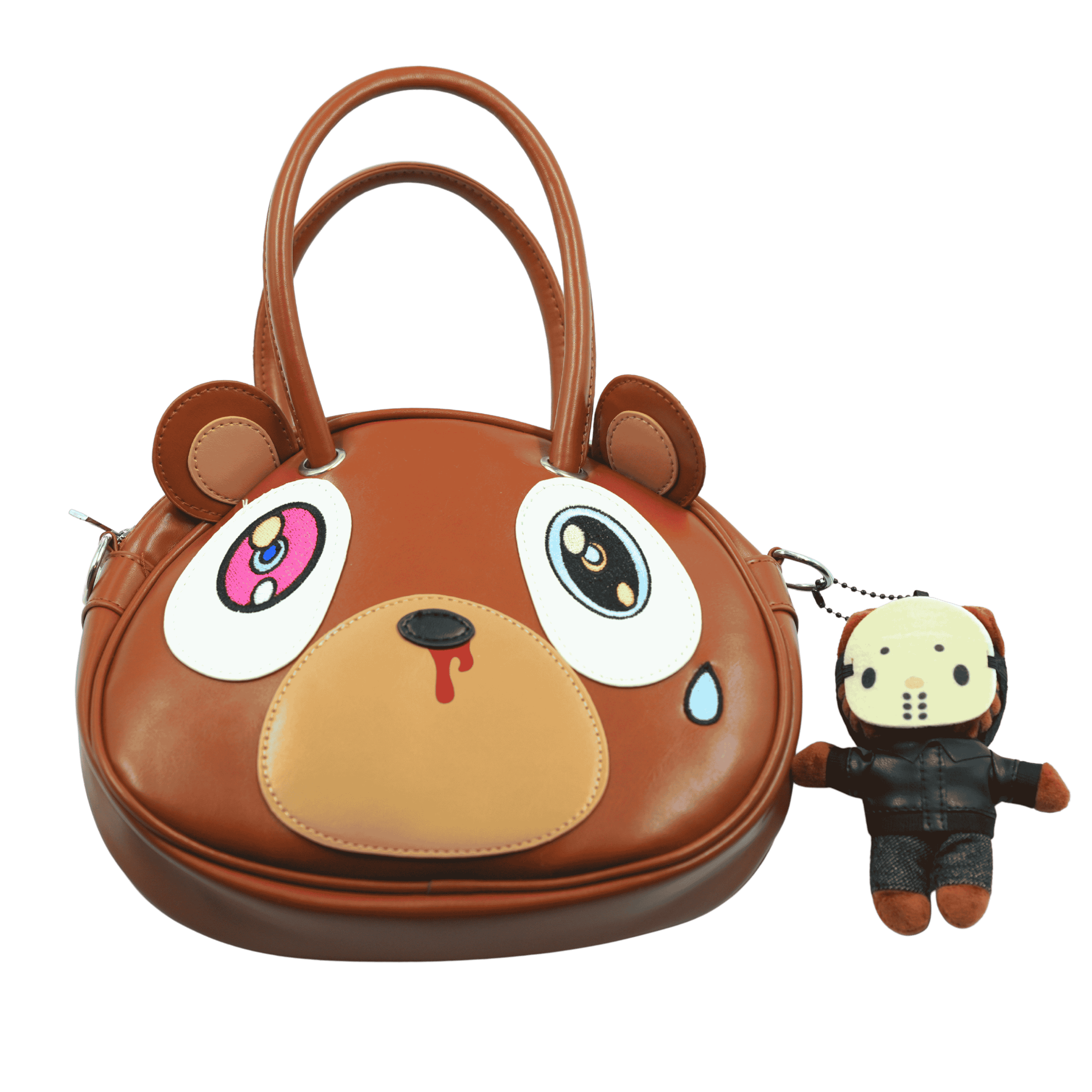 Graduation Bear Tote Bag with Crossbody Strap – Brown Leather Shoulder Bag
